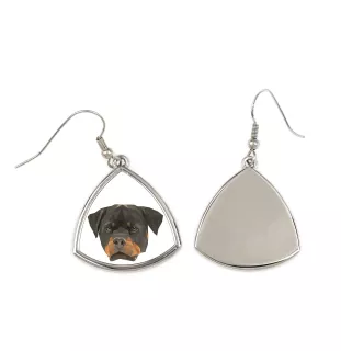 Rottweiler - Ohrringe mit einem Bild und dem Schriftzug "Geometrischer Hund" von Art-Dog
