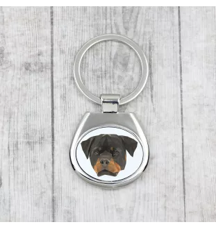 Rottweiler - geometrischer Schlüsselanhänger mit Foto und Aufschrift Art-Dog