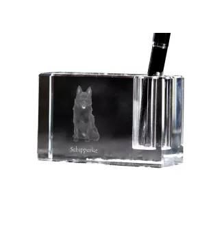 Schipperke - Stifthalter, Kristallorganizer mit Hundefoto, einzigartige Schreibtischdekoration der Marke Art-Dog