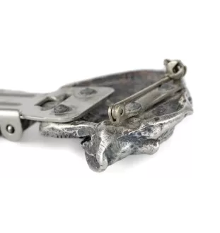 Allen Liebhabern von einzigartigen Accessoires und Hundefreunden wird sicherlich unsere versilberte Brosche mit Clip gefallen, die als Startnummernhalter dient. Diese elegante Anstecknadel mit dem Bild eines Rassehundes ist das ideale Accessoire für Sportveranstaltungen oder Hundeshows und ermöglicht eine bequeme und stilvolle Präsentation der Startnummer.