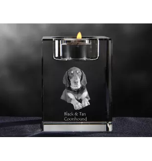 Schwarz-Lohfarbener Waschbärenhund, Black and Tan Coonhound I - Kerzenhalter mit Hundefoto, Teelichthalter aus Kristall, personalisiertes Geschenk der Marke Art-Dog