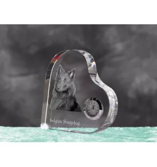 Tervueren Belgischer Schäferhund - Kristalluhr mit einem Hundebild, Herzregal-Uhr, personalisierte Standuhr der Marke Art-Dog