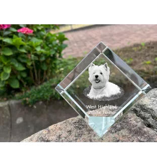 West Highland White Terrier, Weißer Hochlandterrier, Westie - Kristallwürfel mit Bild, Pferdebild im Kristall, sechseckiger Papierclip der Marke Art-Dog
