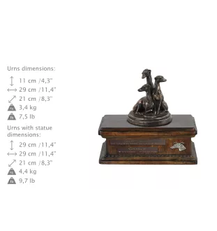 Whippet, Kleiner Englischer Windhund urne in Hundeasche, personalisierte Urne mit Statue, Holzurne mit Hund von Art-Dog