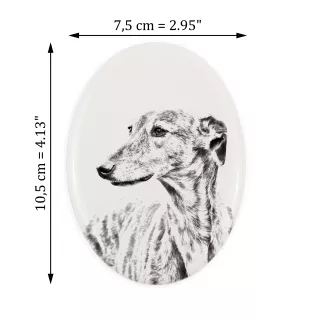 Greyhound, Grosser Englischer Windhund - Gedenktafel mit einem Foto eines Hundes, Grabplatte mit Druck, personalisierte ovale Platte der Marke Art-Dog