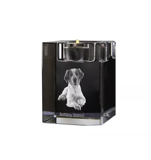 Bretonischer Spaniel, Bretonischer Vorstehhund, Brittany - Kerzenhalter mit Hundefoto, Teelichthalter aus Kristall, personalisiertes Geschenk der Marke Art-Dog