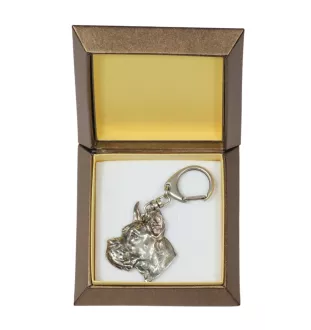 Great Dane I - Silver-plated key ring with a dog in a gift box, handbag...