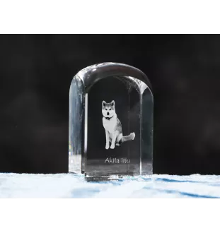 Akita, Akita Inu - crystal cube with a photo, photo of a dog in crystal, cubic paperweight from Art-Dog brand