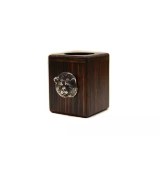 We present a handmade two-bowl stand for dogs that combines functionality with elegance. Produced in Poland, it is made of solid wood, which guarantees durability and high quality. The stand has a classic, rectangular shape that will fit perfectly in any interior. Adorned with a silver-plated bas-relief of a purebred dog, it becomes not only a practical but also a decorative element. The set includes two stainless steel bowls, which are hygienic and easy to clean.