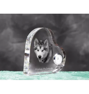 Alaskan Malamute - crystal clock with a dog picture, heart-shaped shelf clock, personalized standing clock by Art-Dog brand