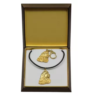 American Cocker Spaniel, Merry Cocker - keychain and necklace with a dog in a box, high-quality gold-plated product, Art-Dog brand