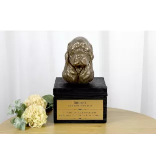 American Cocker Spaniel, Merry Cocker - an urn with an engraving and a sculpture of a dog, a handmade product by the Art-Dog brand.