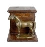 This handmade, wooden urn is characterized by high aesthetics and classic design. The container is adorned with a wooden wreath and equipped with convenient brass handles. The lid can be easily removed to place the ashes inside the urn. A unique statuette from the Art-Dog collection is permanently attached to the extended base of the urn. The horse figurine captures the distinctive characteristics of the breed's appearance.