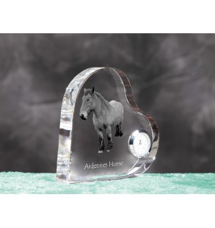 Ardennes Horse - crystal clock with a picture of a horse, heart-shaped shelf clock, personalized standing clock by Art-Dog brand