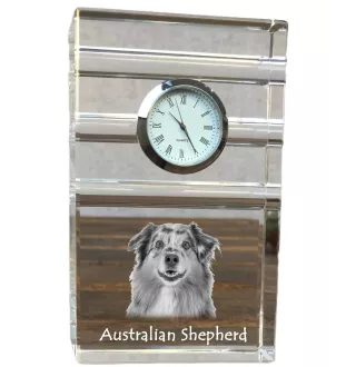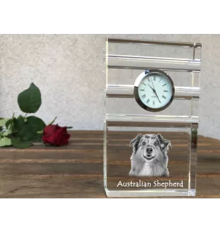 Australian Shepherd - glass clock with a photo, photo of a dog in crystal, personalized standing office clock by Art-Dog brand