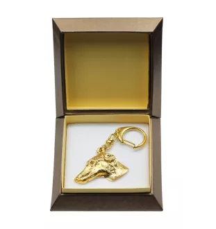 Azawakh, Tuareg Sloughi - Gilded key ring with dog in gift box, handbag decoration, luxury accessory by Art-Dog brand