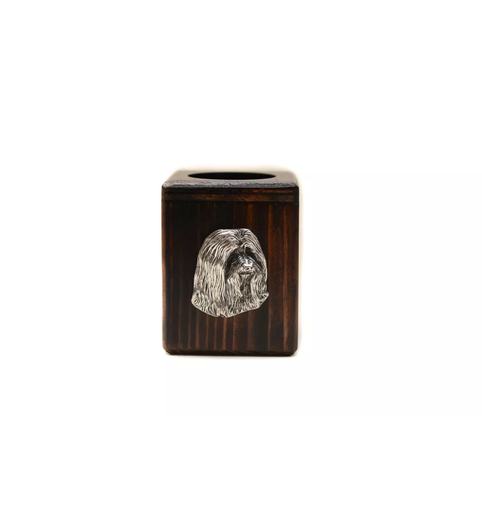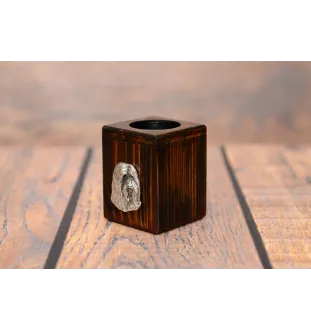 Bearded Collie, Highland Collie, Mountain Collie - wooden candle holder with a dog, a unique souvenir after losing a dog, a handicraft from the Art-Dog brand