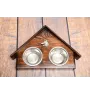 We present a handmade two-bowl stand for a dog, which will certainly become a decoration for any interior. Produced in Poland, it is made of solid wood, which guarantees durability and high quality. The stand has a funny dog house shape, which adds charm and unique character to it. Decorated with a silver-plated bas-relief of a purebred dog, it becomes not only a functional but also a decorative element. The set includes two stainless steel bowls, which are hygienic and easy to clean.