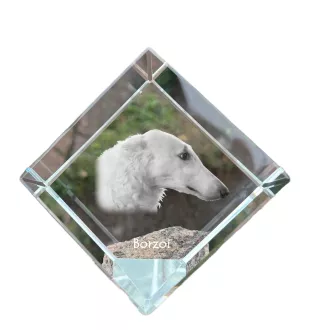 Borzoi, Russian Hunting Sighthound, Russian Wolfhound - crystal cube with a photo, photo of a horse in crystal, cubic paperweight from Art-Dog brand
