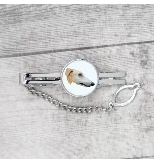Borzoi, Russian Hunting Sighthound, Russian Wolfhound - geometric tie clip with a picture and inscription from Art-Dog