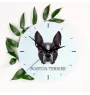 Boston Terrier, American Gentleman - geometric wall clock with a picture and the brand name Art-Dog