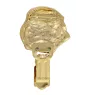 Fans of elegant accessories and dog lovers will surely appreciate our gold-plated brooch with a clip, perfect for displaying a race number at sports events or dog shows. This unique pin with a realistic image of a purebred dog is not only a practical but also a stylish accessory.