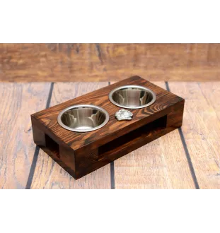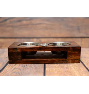 Bouvier des Flandres, Flanders Cattle Dog - wooden stand with bowls for a dog, steel dog bowls, a gift for adopting a dog from the Art-Dog brand