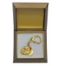 The key ring in a decorative gift box will prove to be a unique gift for a loved one. Our high-class pendants are made by a Polish artist with attention to detail and typical features of the dog breed. The metal pendant is very durable, and because it is covered with a layer of gold, it is also elegant and luxurious. It will prove useful not only as a key tag, but also as a unique decoration for a handbag or backpack. The product is not only a practical gadget, but also a unique accessory that always catches the eye of dog lovers. It is equipped with a convenient and easy-to-use clasp, guaranteeing that the key ring will not detach on its own.