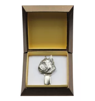Boxer, German Boxer - brooch with a clip, holder for a start number, silver-plated dog show pin from the Art-Dog brand