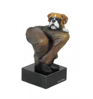 Boxer, German Boxer II - dog figurine, statue on white marble, trophy for Art-Dog dog show exhibition