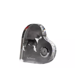 Bull Terrier, Bully - crystal clock with a dog picture, heart-shaped shelf clock, personalized standing clock by Art-Dog brand