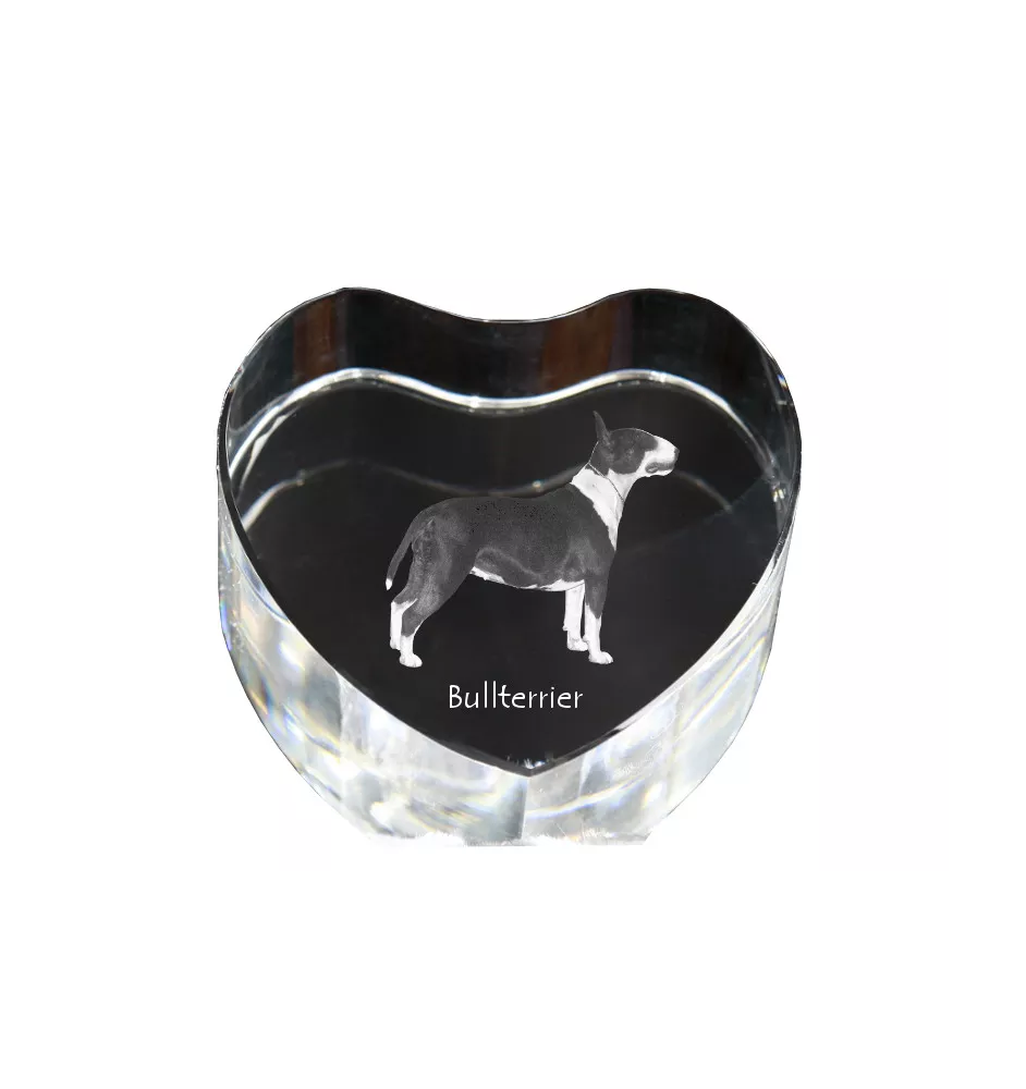 Bull Terrier, Bully - a photo of a dog in crystal, crystal heart, unique photo frame from the Art-Dog brand