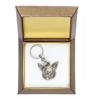 Chihuahua short-haired, Chihuahua smooth - Silver-plated pendant with a dog in a decorative box, handbag decoration, backpack pendant by Art-Dog brand