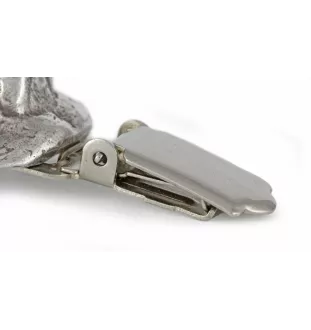 All enthusiasts of unique accessories and dog lovers will surely appreciate our silver-plated brooch with a clip, serving as a holder for a race number. This elegant pin with the image of a purebred dog is the perfect addition for sports competitions or dog shows, allowing for convenient and stylish display of the race number.