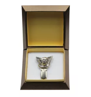 Chihuahua short-haired, Chihuahua smooth I - brooch with a clip, holder for a start number, silver-plated dog show pin from the Art-Dog brand