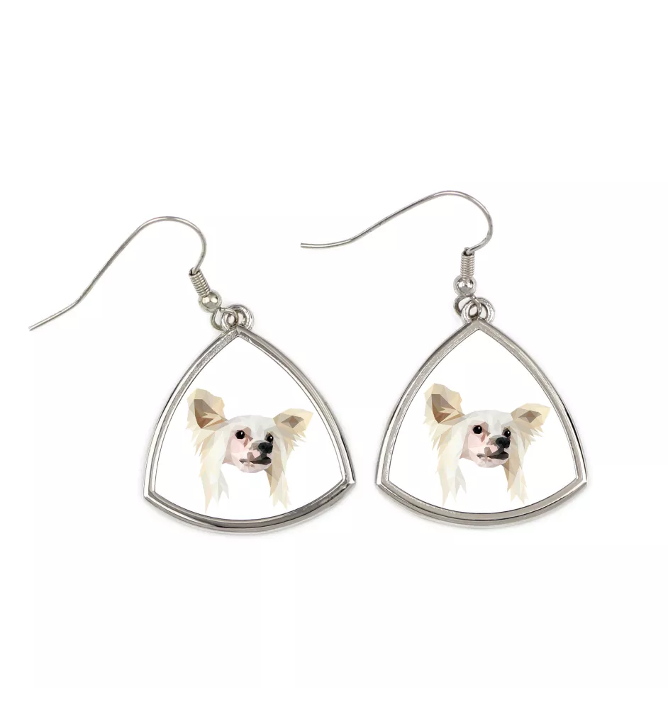 Chinese Crested Dog, Puff - earrings with a picture and the inscription geometric dog Art-Dog