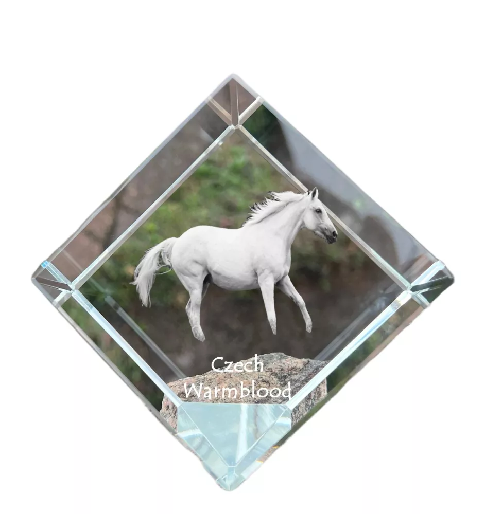 Czech Warmblood - crystal cube with a horse picture, horse picture in crystal, cubic paperweight from Art-Dog brand
