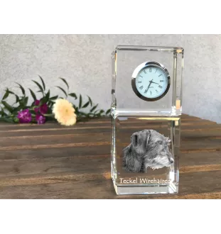 Dachshund Wire-haired, Wiener dog, Badger dog I - crystal clock with a photo, a photo of a dog in crystal, personalized desk clock by Art-Dog brand