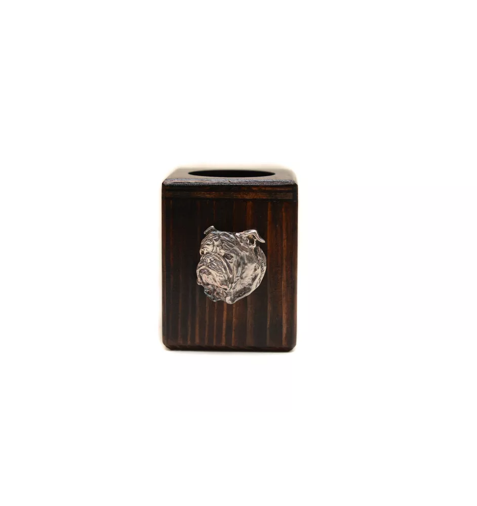 Bulldog, English Bulldog, British Bulldog I - wooden candle holder with a dog, a unique souvenir after losing a dog, a handicraft from the Art-Dog brand