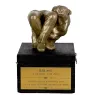 The wooden urn is made of birch wood, making it durable and long-lasting. The urn has an elegant clasp and a gold-colored plate with black engraving. The bottom of the box is finished with felt rings to prevent scratching furniture during transport. The dog figurine is made of cold-cast bronze, allowing it to retain the appearance and durability of bronze while reducing the price and weight of the figurine. The classic style of the urn makes it timeless.