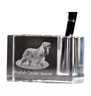 English Cocker Spaniel - Pen stand, crystal organiser with dog photo, unique desk decoration by Art-Dog brand