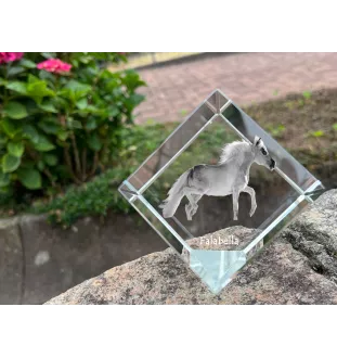 Falabella - crystal cube with a horse picture, horse picture in crystal, cubic paperweight from Art-Dog brand