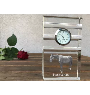 Hanoverian - glass clock with a photo, photo of a horse in crystal, personalized standing office clock by Art-Dog brand