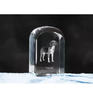 Harrier - crystal cube with a photo, photo of a dog in crystal, cubic paperweight from Art-Dog brand