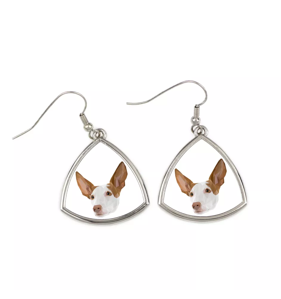 Ibizan Hound, Ibizan Podenco, Ibizan Warren Hound - earrings with a picture and the inscription geometric dog Art-Dog