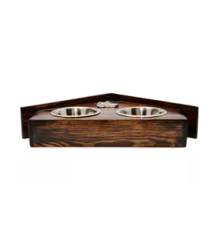 We present a handmade two-bowl stand for a dog, which will certainly become a decoration for any interior. Produced in Poland, it is made of solid wood, which guarantees durability and high quality. The stand has a funny dog house shape, which adds charm and unique character to it. Decorated with a silver-plated bas-relief of a purebred dog, it becomes not only a functional but also a decorative element. The set includes two stainless steel bowls, which are hygienic and easy to clean.