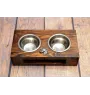 We present a handmade two-bowl stand for dogs that combines functionality with elegance. Produced in Poland, it is made of solid wood, which guarantees durability and high quality. The stand has a classic, rectangular shape that will fit perfectly in any interior. Adorned with a silver-plated bas-relief of a purebred dog, it becomes not only a practical but also a decorative element. The set includes two stainless steel bowls, which are hygienic and easy to clean.