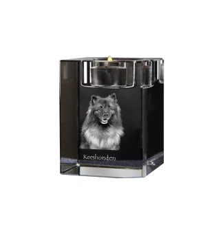 Keeshond, Dutch Barge Dog, Smiling Dutchman, - Candle holder with dog photo, crystal tealight holder, personalised gift by Art-Dog brand