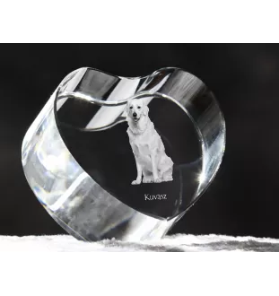 Kuvasz - a photo of a dog in crystal, crystal heart, unique photo frame from the Art-Dog brand