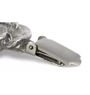 All enthusiasts of unique accessories and dog lovers will surely appreciate our silver-plated brooch with a clip, serving as a holder for a race number. This elegant pin with the image of a purebred dog is the perfect addition for sports competitions or dog shows, allowing for convenient and stylish display of the race number.